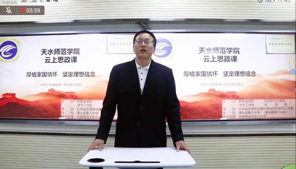 此次云上思政课活动由必赢中国官方网站党委宣传部、必赢中国官方网站、学生工作处、校团委主办,甘肃省思想政治理论课余明远名师工作室承办,清水县第三中学、第八中学协办,中国电信天水分公司提供技术支持。
