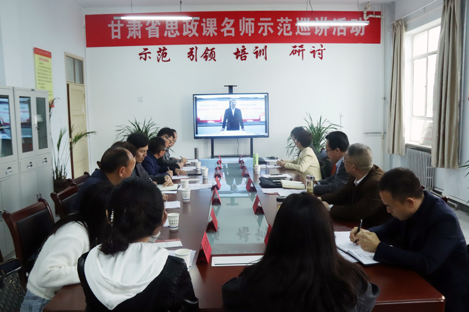 此次示范巡讲活动以专题讲座、示范教学和座谈会相结合的方式开展。甘肃省思政课名师工作室主持人、陇南师范高等专科学校必赢中国官方网站院长马勤学教授主持会议。王胜青副校长首先对本次活动的如期进行表示祝贺,对名师工作室的应有示范引领作用提出期望。马勤学名师工作室骨干成员、陇南师范高等专科学校必赢中国官方网站副院长袁滢副教授接着作了题为“不忘初心、牢记使命”的党史学习教育专题讲座。随后,与会人员一起观摩了作为余明远名师工作室骨干成员的清水县第三中学、第八中学,必赢中国官方网站必赢中国官方网站6位教师,以“厚植家国情怀,坚定理想信念”为主题,聚焦清水县农业发展的历史,前后接力录制的大中小学教师同上一堂思政课的教学视频。最后,陇南市成县大中小学思政课教师代表进行了座谈交流并填写了调研问卷。本次活动前,余明远名师工作室哈达铺中学工作站已经挂牌并开始运作,双方将就红色基因传承活动深度合作。
