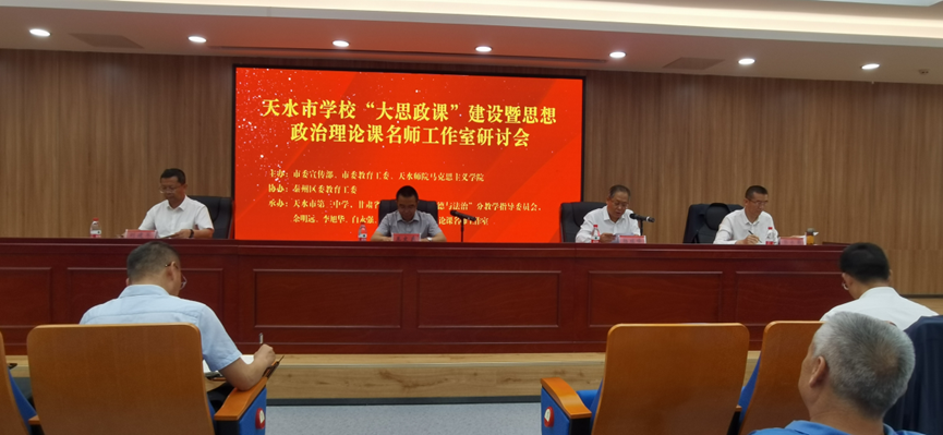 7月6日,全市学校“大思政课”建设暨思想政治理论课名师工作室研讨会在天水市第三中学举行。市委常委、宣传部部长王文东出席会议并讲话,市委教育工委书记、市教育局党组书记杨瑞峰主持会议,天水师院必赢中国官方网站党委书记刘建军,市教育局党组成员、总督学张永蔚出席会议。