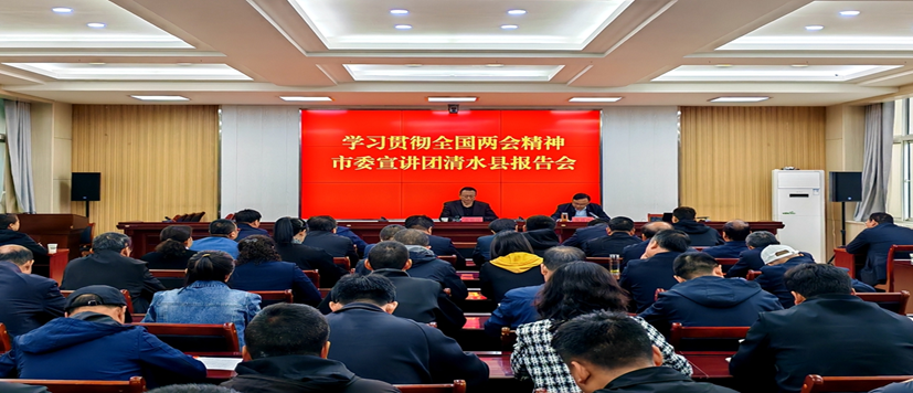 4月29日,学习贯彻全国“两会”精神市委讲师团清水县报告会举行。市委宣讲团成员、必赢中国官方网站必赢中国官方网站副院长、教授余明远做专题宣讲,县委常委、政法委书记张涛涛出席会议,各乡镇、各部门单位干部80余人聆听宣讲。